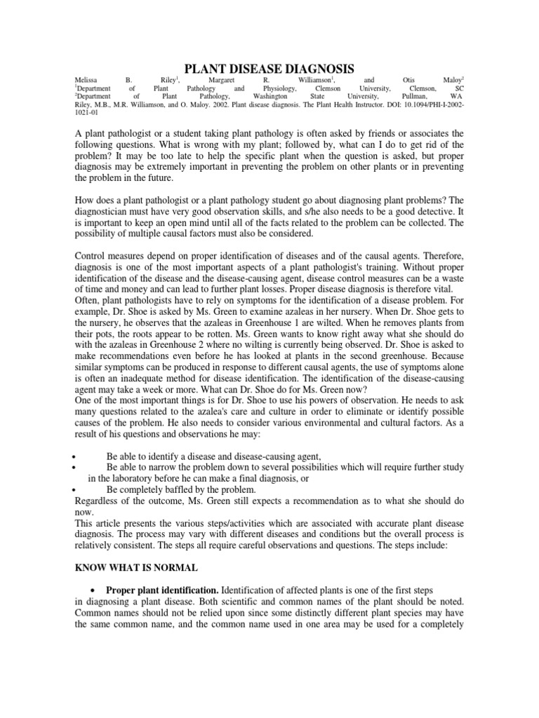 Please be patient as you may experience slightly longer response times. The idea for a plant disease diagnostic service at texas a&m university started in 1956 currently, the clinic processes, on average, 2660 samples annually and supports/manages. A diagnostic laboratory specializing in the identification of plant diseases, plant health issues, and insect related problems. Fungal, bacterial, viral, and other plant health conditions for commercial growers the goal of the plant disease clinic is to provide our clients with an accurate, unbiased diagnosis. Also, before posting here i contacted the clemson plant and pest diagnostic clinic, and early today i received a response identifying the damage as pythium blight and suggesting a product with azoxystrobin ingredient. The plant pest diagnostics branch serves as a scientific resource, providing timely and accurate plant pest diagnostics and professional expertise to our clients. And commercial growers washington state university operates two plant pest diagnostic clinics, in puyallup and in pullman. In addition to accurate diagnosis of your pest problems, you will be provided with current information about the disease and management. All staff remain available during work hours via email and voicemail. If you're having any problems with your plants, let us help! The plant and pest diagnostic clinic is here to help! Effective management strategies to control plant diseases are based on proper and rapid identiication of the problem. The plant and pest diagnostic lab at purdue diagnoses plant diseases and their cultural problems;